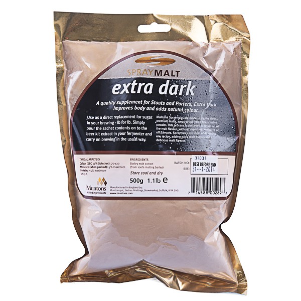Extra Dark Spray Maltia(EBC 70-120) suositellaan tummiin, vahvoihin olueisiin, kuten stout ja porter tyylisille olueille